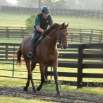 TCF: Big Brown is the epitome of a healthy, happy horse. He has an outstanding temperament in that he is not easily rattled and is quite personable. We ride our stallions 6 days a week (they gallop a mile and a quarter) and Big Brown just floats around the track with his ears pricked – if horses could smile, they would look like Big Brown under saddle.