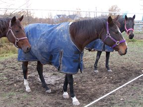 Temperatures fell below zero and snow drifts rose to the Thoroughbreds bellies. With many long, cold winter months of snow and freezing temperatures these thirteen horses will appreciate their new blankets.
