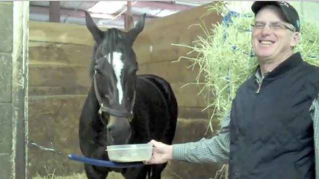 In another YouTube video, Shirreffs gives Zenyatta a Guinness beer while she is relaxing after a workout.
