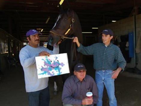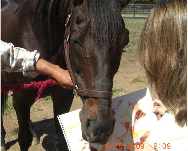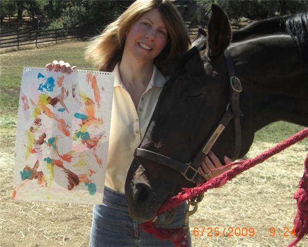 She has learned to paint pictures for auction to help fund Thoroughbred rescue efforts.
