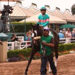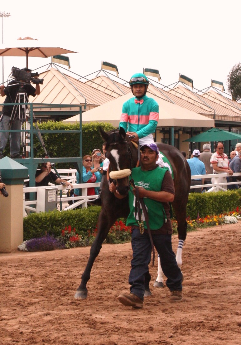 While he was being saddled for an allowance race, a circle of people had collected at the paddock to view him. Among the crowd, was veteran turf writer, Charles Hatton.